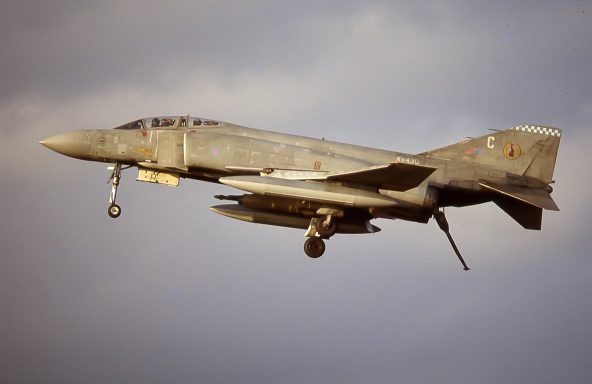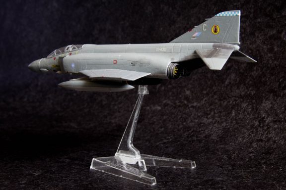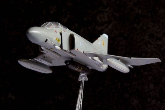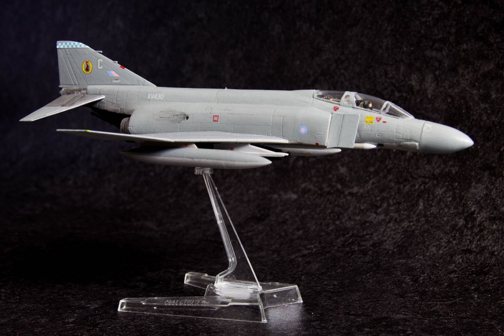 De eerste van twee RAF Phantoms, zoals die ooit op RAF Wildenrath te zien waren. Dit is een ouwe Matchbox-doos, 1:72, uitgevoerd als de XV430/C van 19 Sqn in de configuratie waarin ik 'm in 1982 tijdens de nadering van RAF Wildenrath fotografeerde - maar dan met 'alles in'. De tweede Phantom wordt er één van Airfix, maar die laat nog even op zich wachten.