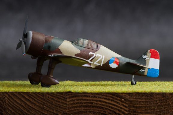 De eerste bouwdoos die ik af kreeg sinds de start van mijn tweede modelbouwleven! Een simpel kitje, 1:72, maar wel van een mij tot de verbeelding sprekend Fokkerprodukt: vast landingsgestel, zeg nou zelf! Uitgevoerd als de 221 'af fabriek'. Tijdens de meidagen van 1940 gevlogen door luitenant Doppenberg, die er een Messerschmitt Bf109 mee uit de lucht schoot.
