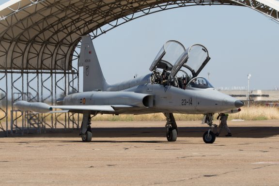Als verrassing had men ook een bezoek aan Talavera la Real weten te regelen: Spaanse F-5's!